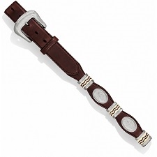 Brown scallop calf 1-1/2" belt with rawhide and silver round conchos with a matching removable buckle: